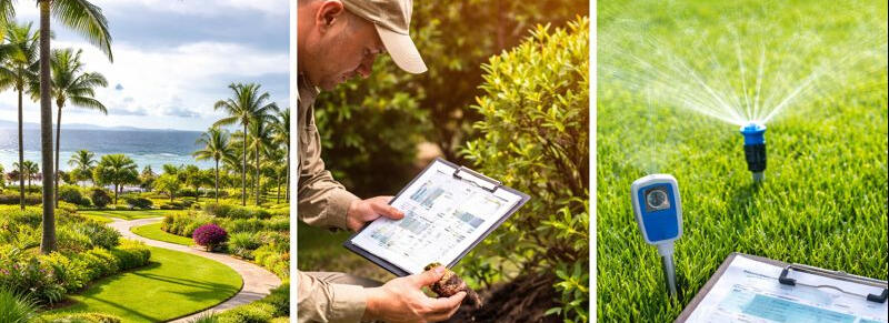 • Evaluation of plant health, irrigation systems, and maintenance practices